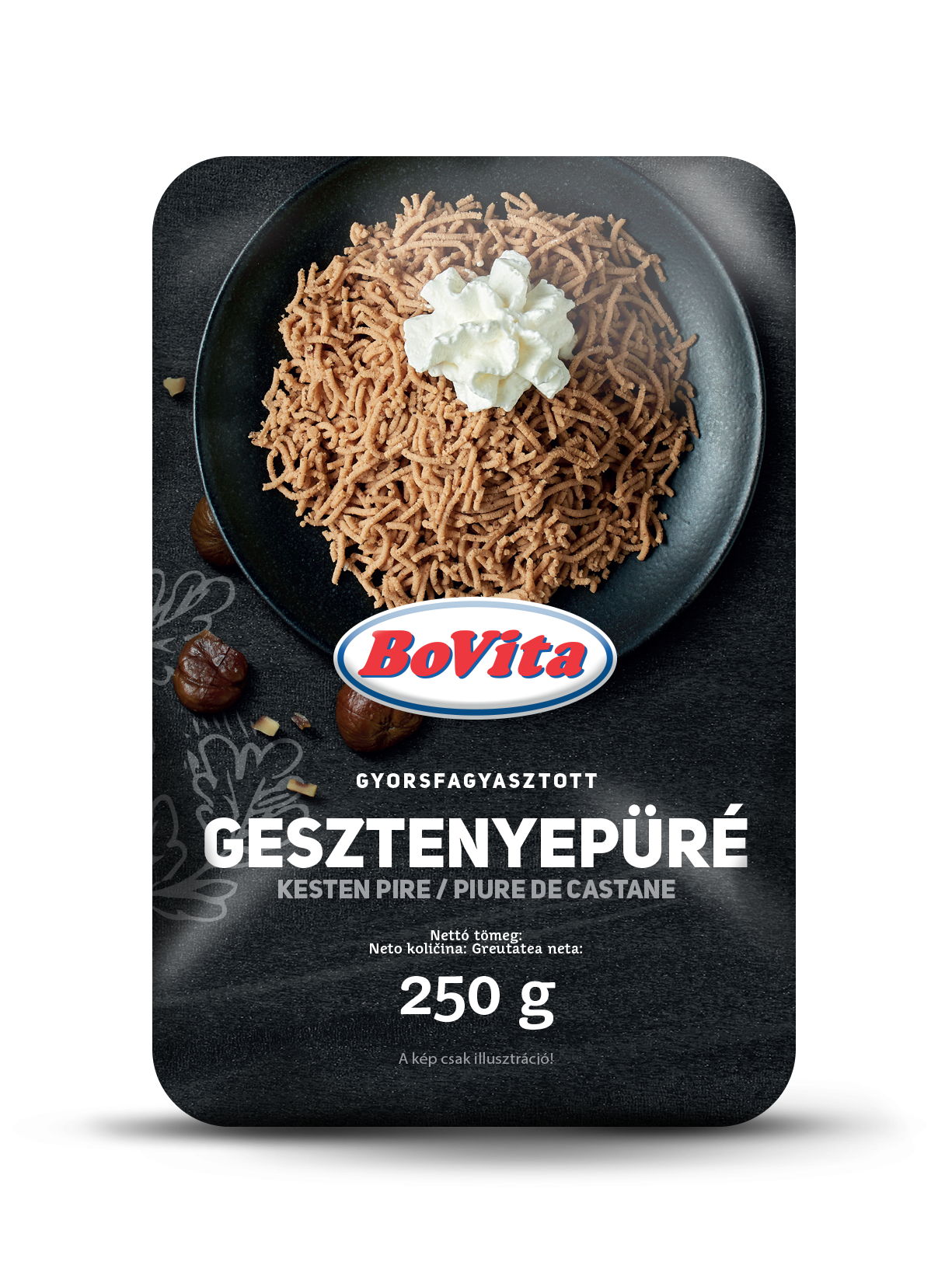 Gesztenyéből akár a klasszikus pürét vagy mousse-t készítve is tökéletes a végeredmény. A Kukta Meggy helyett használhatunk más Kukta fagyasztott gyümölcsöket is, például Kukta Gyümölcskeverék vagy Áfonya.