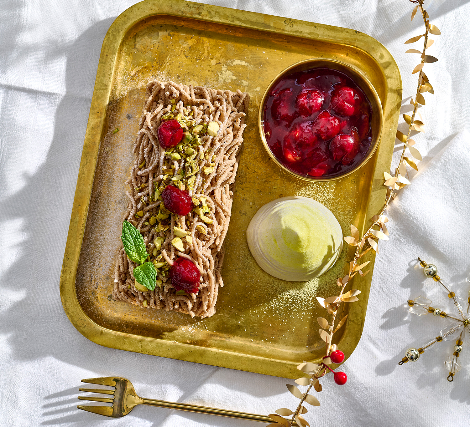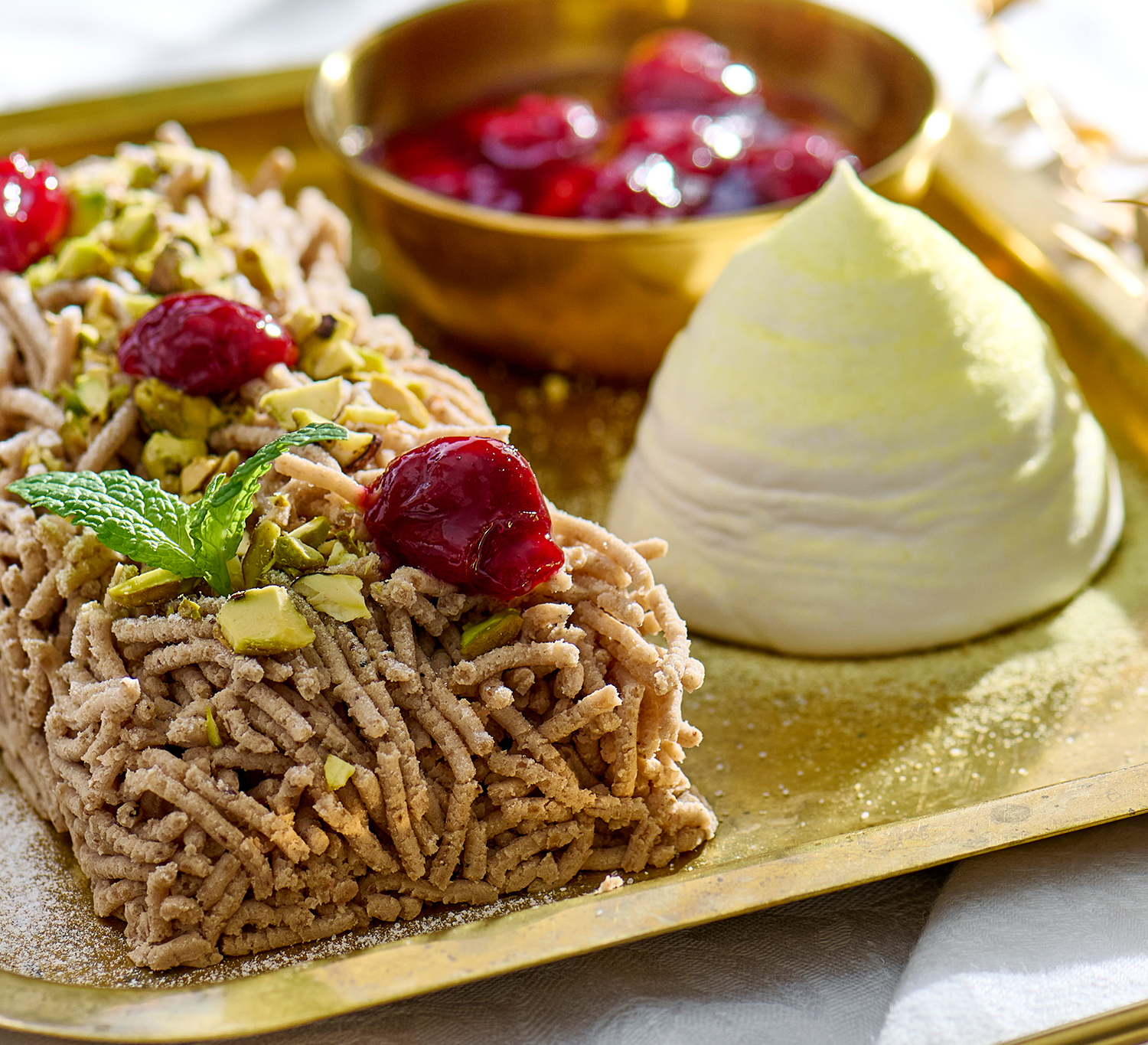 Klasszikus gesztenyepüré forró meggyraguval és Tokaji aszús tejszínhabbal