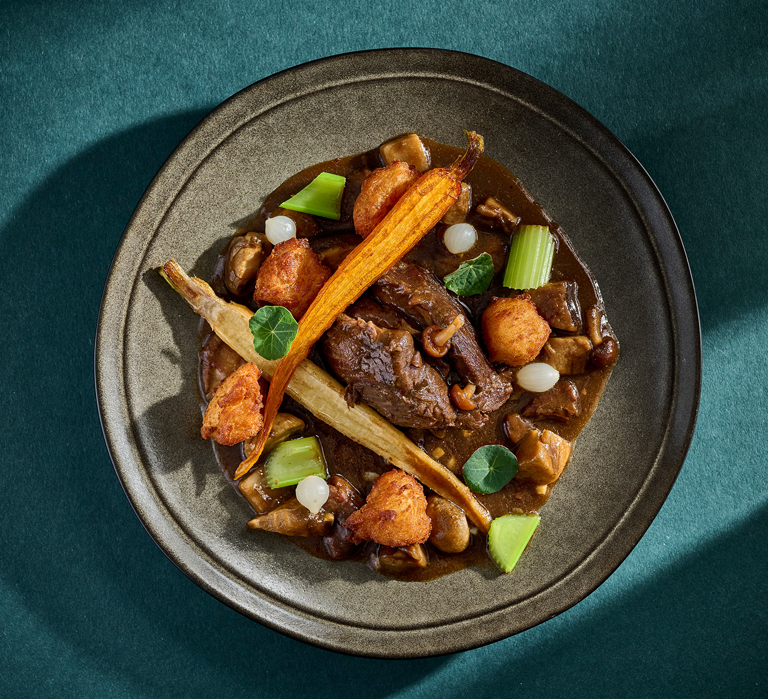 Grillezett bélszín erdei gombakrokettel és zellerpürével